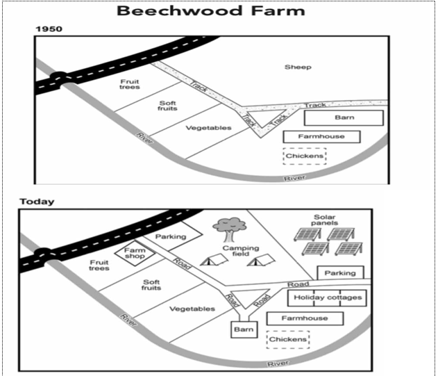 Task 1: The plans show the site of a farm in 1950, and the same site today.